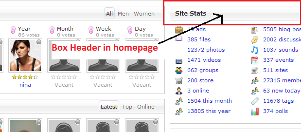 i just want the box header color will appear on homepage not the background,font in their profile customization.