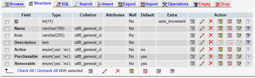You need to navigate to phpMyAdmin > Database > Structure to edit the actual table structure.