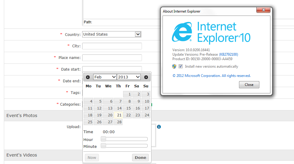 hmm the best i can do in IE 10 is type it in manually. Running server server 2012 so that may be the problem. I think javascript is disabled by default. But, thanks for checking and confirming. https://dolphin-techs.com - Skype: Dolphin Techs |