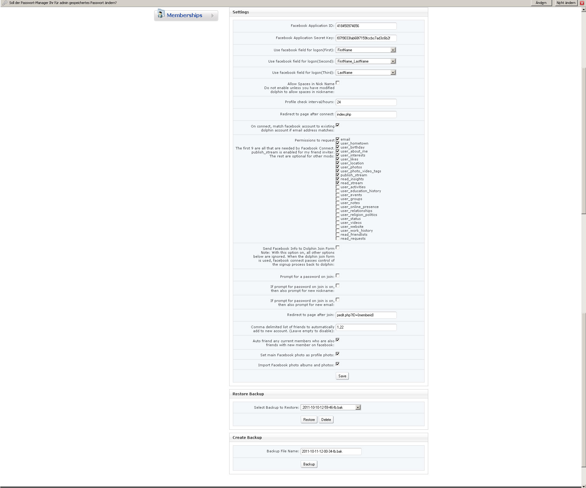 Hey Deano Just wanted to check something before I changed anything on my site due to the issues we had before. As you remember my users can only join with your FB connect on my site. My forums are SMF forums which are integrated to Dolphin. The issue I am having is the way I have FB connect set up it issues the password after join and many dont remember it to use in the forums for login and are reseting in SMF My question is if I check "Prompt for password on join" would this allow them to enter their own so that say they could use same password as they use on Facebook so they can remember and if so they will still be able to use FB Connect for login correct?