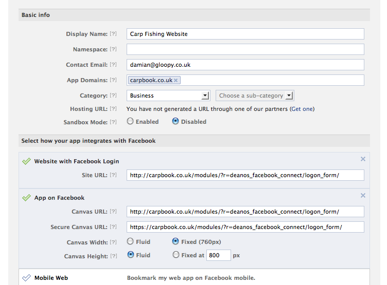 cant login with this i get the following error on facebook The Facebook Connect cross-domain receiver URL (http://blackberrypinpal.com/modules/?r=deanos_facebook_connect%2Flogin_form) must be in the same domain or be in a subdomain of an application's base domain (www.blackberrypinpal.com). You can configure the base domain in the application's settings. my base domain is set to www.blackberrypinpal.com incase anyone else has this issue. my base was set as www.blackberrypinpal.com and it should be just blackberrypinpal.com | |||||||||
