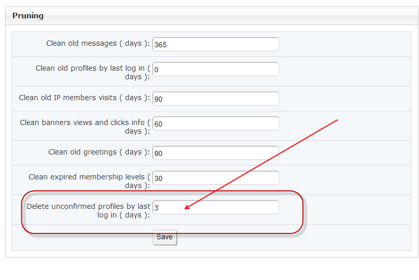 So for example. If you set it for 14 days, then it will delete all members that have remained unconfirmed for more than 14 days and have not logged in at all during those 14 days.
