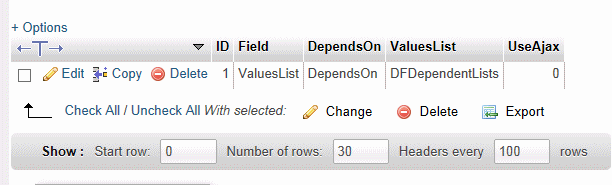 I have 2 Top level Lists each with it's own dependent list under it so shouldn't there be more in the aqb_df_custom_dependencies table?