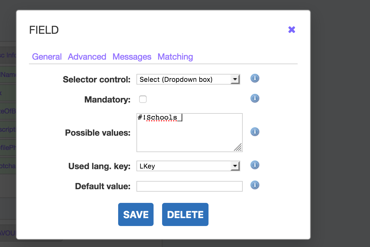 select dropbox menu, however in my case since I have 8 dependent fields all coming from the same list