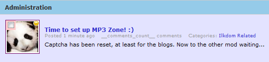 1. I wonder why a journal is not made public? At least the journal entry, there should be a block to put on the Profile, not just the one in the Dashboard... (or is there one and I'm not seeing it?) Right now, I think of copying Diary Entries block from the member.php to the profiles, with the proviso that members can limit the visibility themselves... but it is still two more clicks on top of what I'd like my members to do... P.S.: And I don't see a way how to share journal and for example, birthdays, in the same block (in the above mentioned fix). Even to my faves, I want to share only journal entries, not my birthday entries or tasks - is there a way how to modify the member.php block to display only these (=journal entries)? 2. Is there a language key missing? What is __comments_count__ comments (please see attachment)? Or is it some part of the script not functioning properly and displaying only the section of the code? |