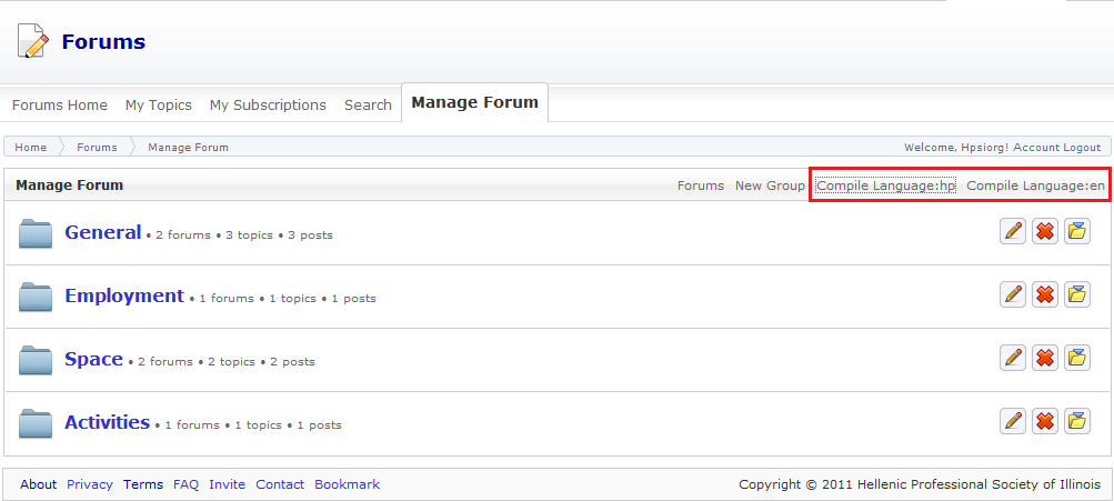 - English has been removed as a language from the site, but still appears as a compile language in Manage Forums (see attached image) and compiles successfully.