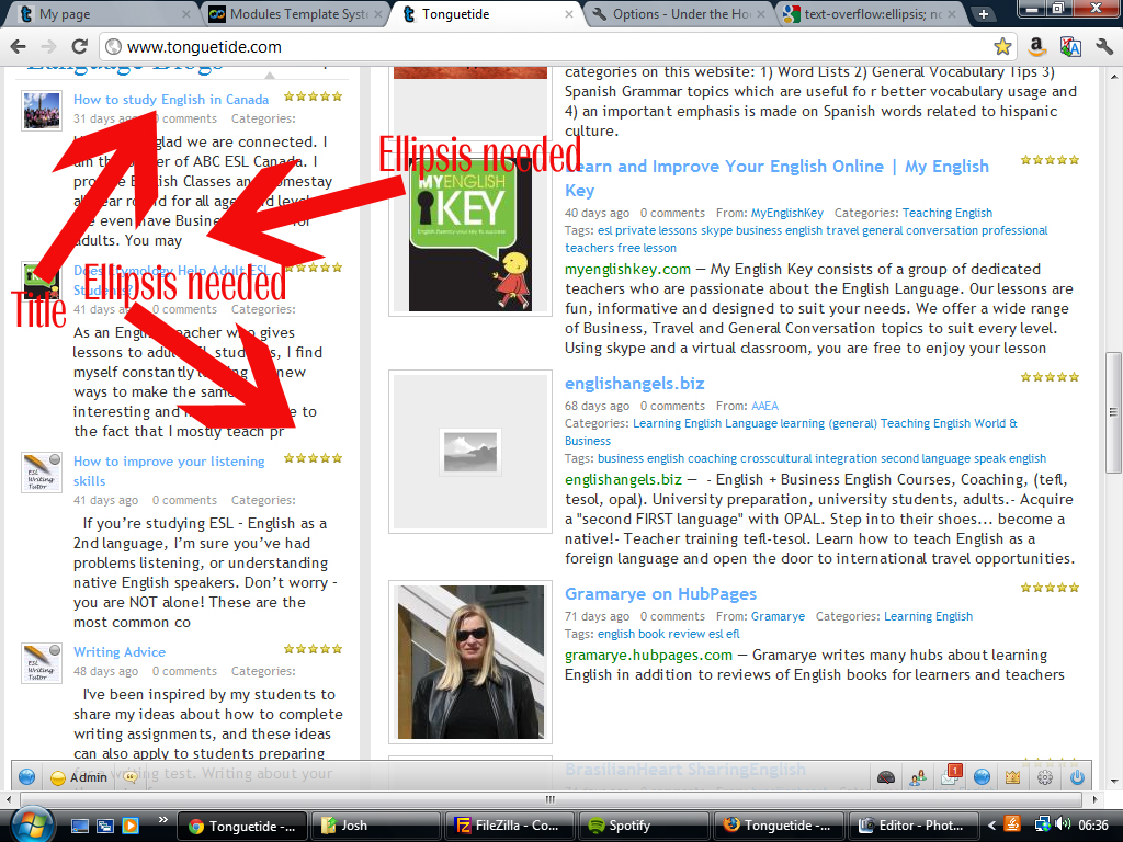 1. Can't seem to get text-overflow: ellipsis to work so overfflowing text finishes with "..." (screenshot attached)
