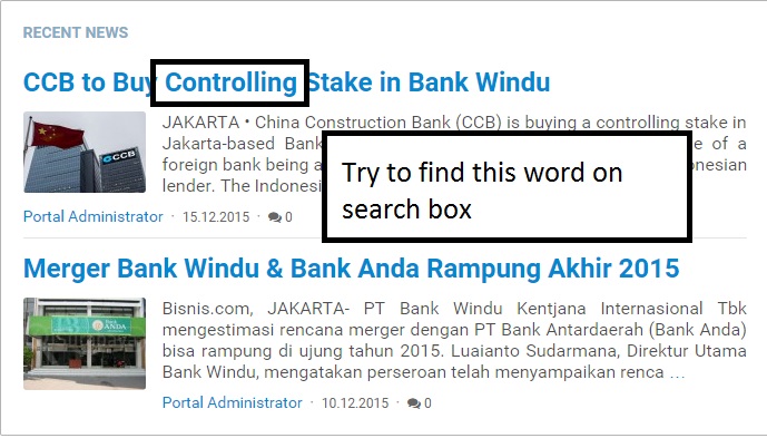 I have problem with search action, when I try to search with word in the middle or in the end of the 'Title' or something. There is always empty result. Please see attached file.