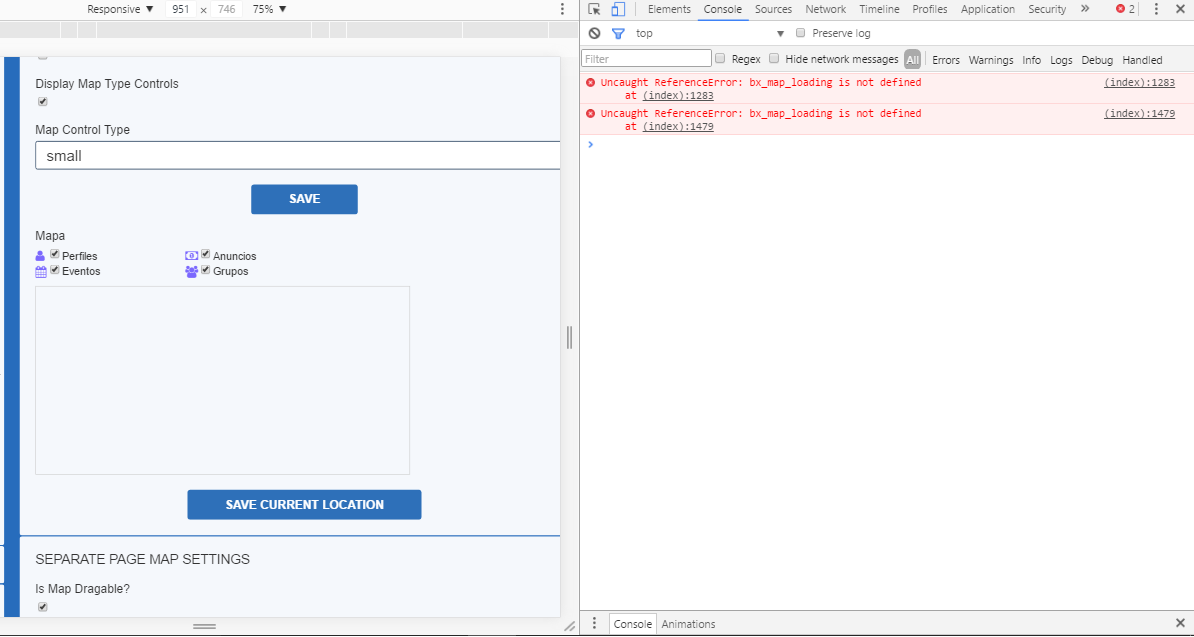 The console gives me this error: Uncaught ReferenceError: bx_map_loading is not defined