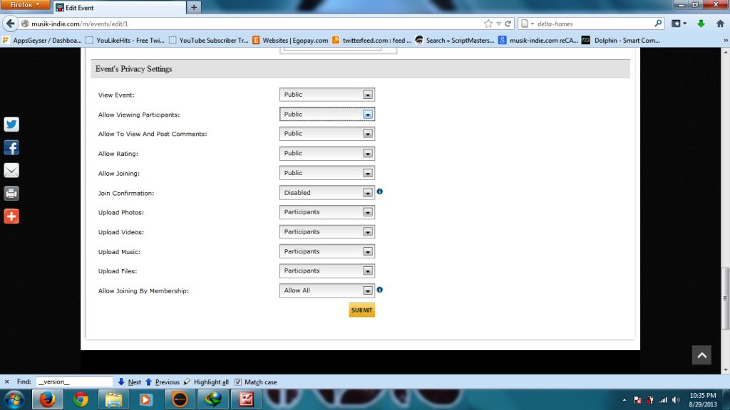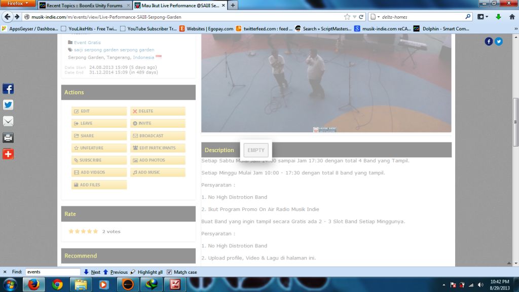 Any one help in admin events Module it's showing that there is participants but in event's view both the Participants & Unconfirm Participants showing empty and in edit participant is also empty . I'm using dolphin 7.1.4. Sorry about my english. Musik Indie Network - www.musik-indie.com |