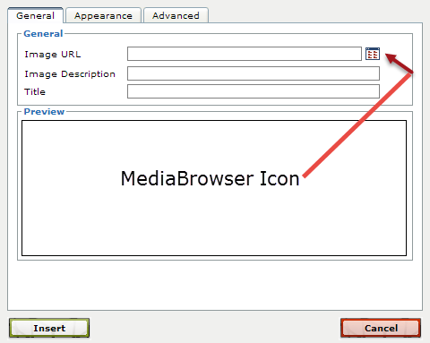The problem is that clicking on MediaBrowser Icon does not call = does not open Media Browser Window: