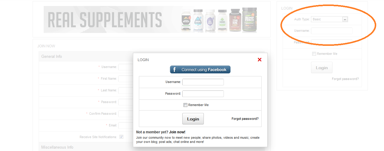 When trying to join it is not so obvious to potential members that they can sign in via their Facebook account. See screenshot. There is nothing to tell them otherwise and most would fill the form out from scratch. Most would not realise to change Auth type from basic to Facebook connect. |