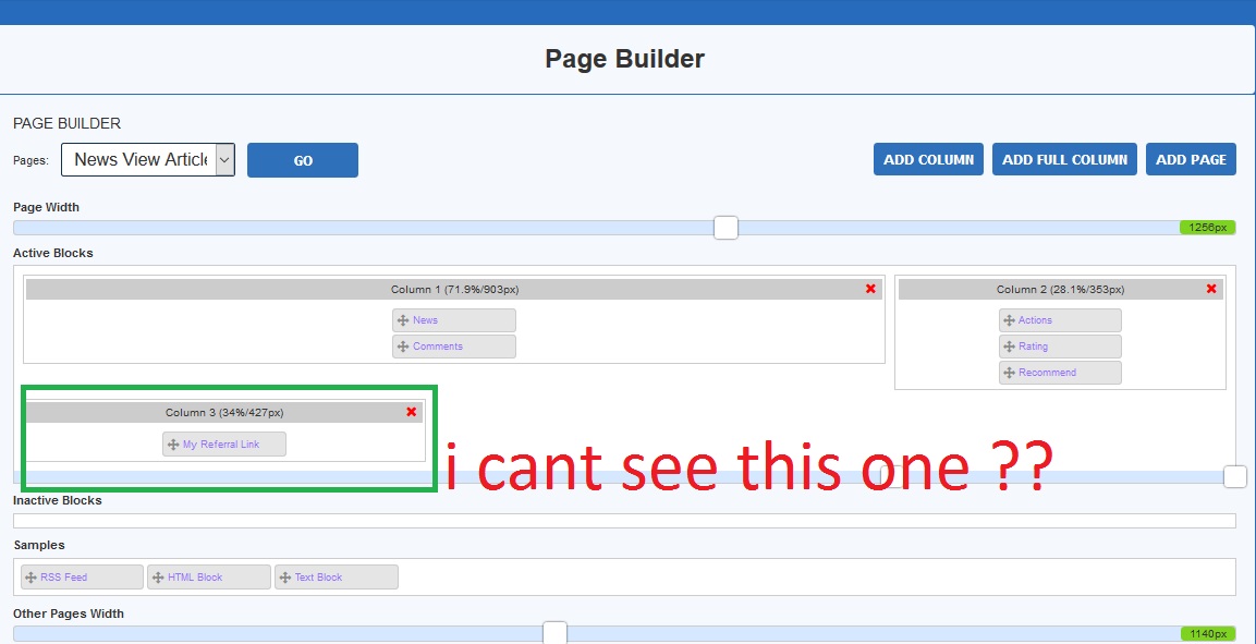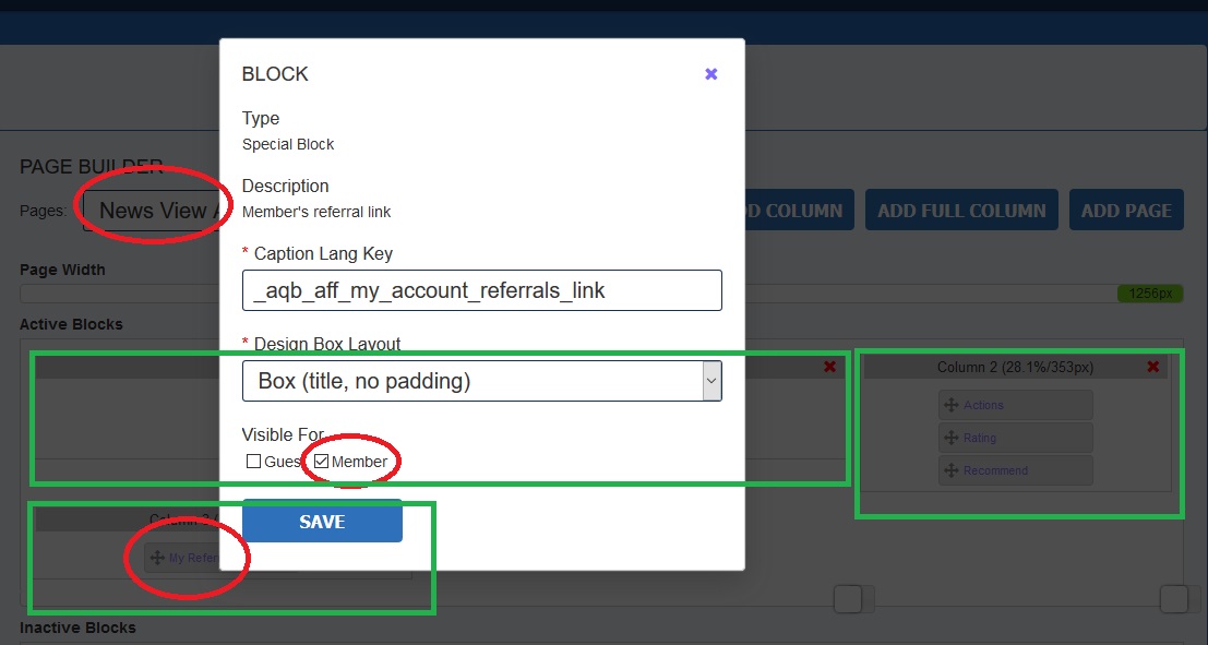 Hello, accept! Yes, it is good idea and we have the default list of pages in module, which contains block with the referral link. As you have installed 3rd module and want to see referral link on it, you need to add this block on the page. You may use this query for it. INSERT INTO `sys_page_compose` (`ID`, `Page`, `PageWidth`, `Desc`, `Caption`, `Column`, `Order`, `Func`, `Content`, `DesignBox`, `ColWidth`, `Visible`, `MinWidth`) Don't forget to replace bx_blogs parameter in my example with name of the page on which you want to place this block. Also you need to add new item to sys_options table into record with name aqb_aff_block_with_invitation_links for this page and then edit function isPageLinkAllowed($sPage) in module/aqb/affiliate/classesAqbAffTemplate.php file Best Regards AntonLV - http://www.boonex.com/market/posts/AntonLV | ||||||||||||||||||||||||||||