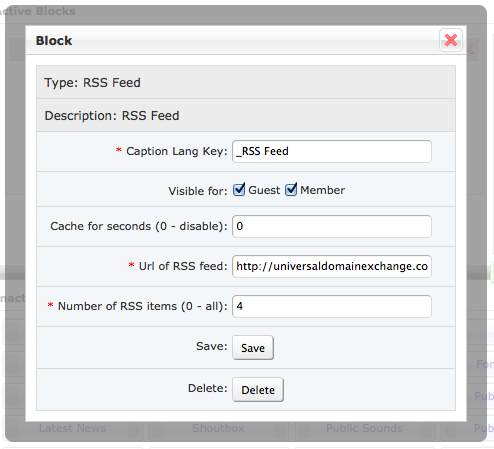 When I enter: {SiteUrl}forum/?action=rss_updated_topics as the the URL of RSS Feed and with 4 items to be displayed and save it. When I reload the front page, I only get a spinning icon that never goes away, although the page does stop loading. Any help would be appreciated. It should work fine, I've test it and it works, try to check if you entered this url correctly and without any spaces Rules → http://www.boonex.com/terms |