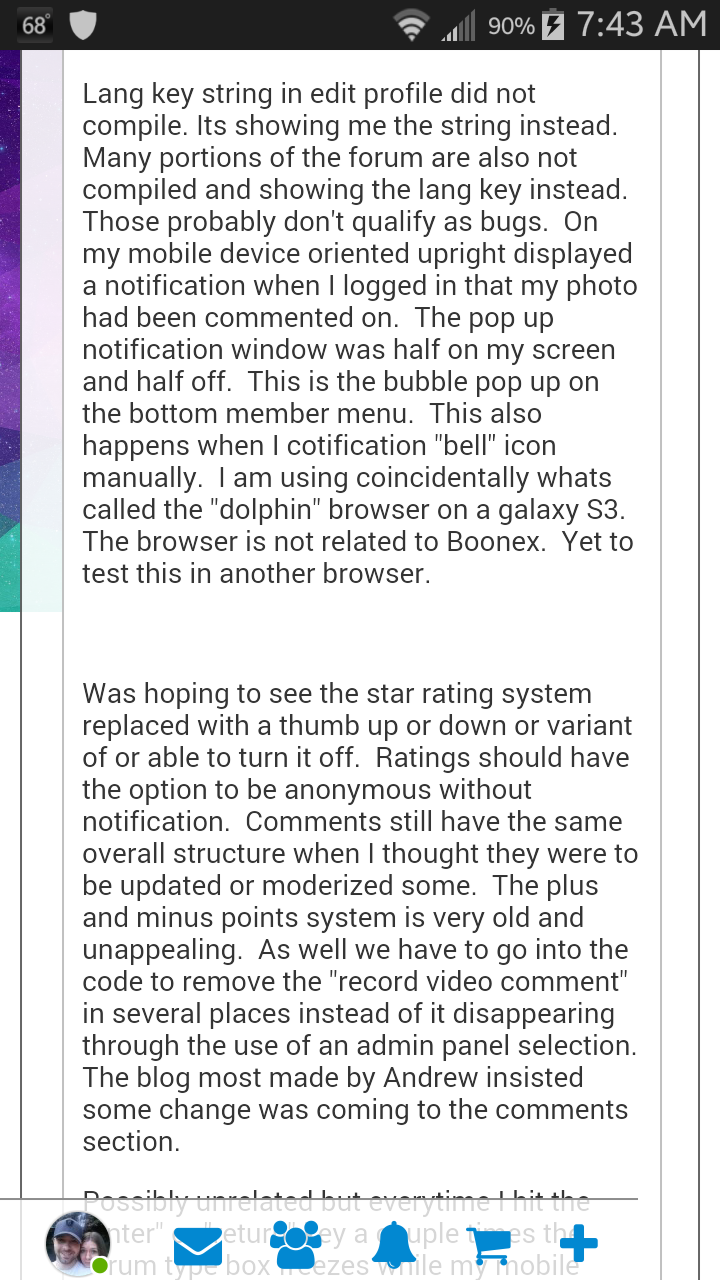 I had several problems with TinyMCE and was talking about other issues when the entire thing froze on my galaxy. TinyMCE did not fully adapt to my phone in the up right portrait position and features like moxie manager do not work on my device. Perhaps on others they do. In efforts to save my orignal failed post when TinyMCE completely locked up I took some screen shots of what I had said. Please see the attachments below. Thanks. Other than this and some mentions in the screen shot this is a good postive move forward.