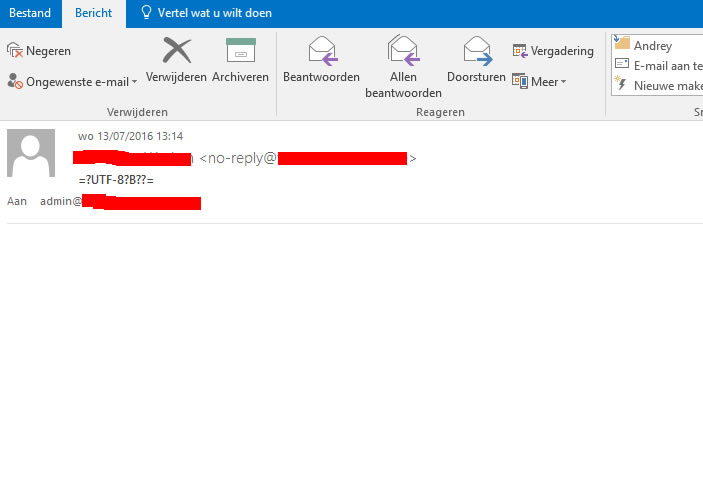 Screenshot attached, nothing much to see there except for the =?UTF-8?B??= in the header. I always receive 2 emails : one with this strange header, the second one is the correct one (saying new member has joined). Anyway, I receive them whenever an email is being sent through the site (new member, membership change, email confirmation, ...)