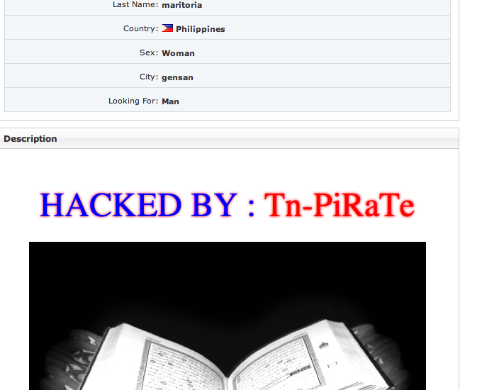The self proclaimed Palestinian Cyber Terrorist got my host server a couple of weeks ago. AND took down my dating sites. Ironic it happened when I was in Isreal and I was learning of the hardships they have first hand... this did not really help things...