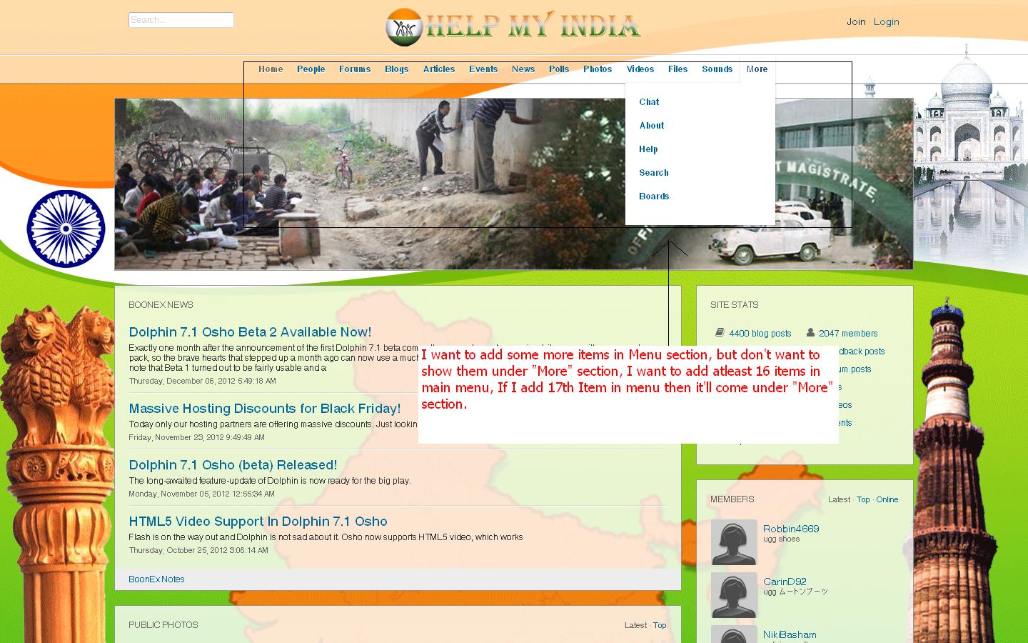 I want to know from where I can manage my Header Menu in numbers from Admin, I mean still I can add 12 items in menu, if I want to add any extra item in menu it is showing in "More" section in Header, but I want to show at least 16 items in main block. Please see the attached file for more details...