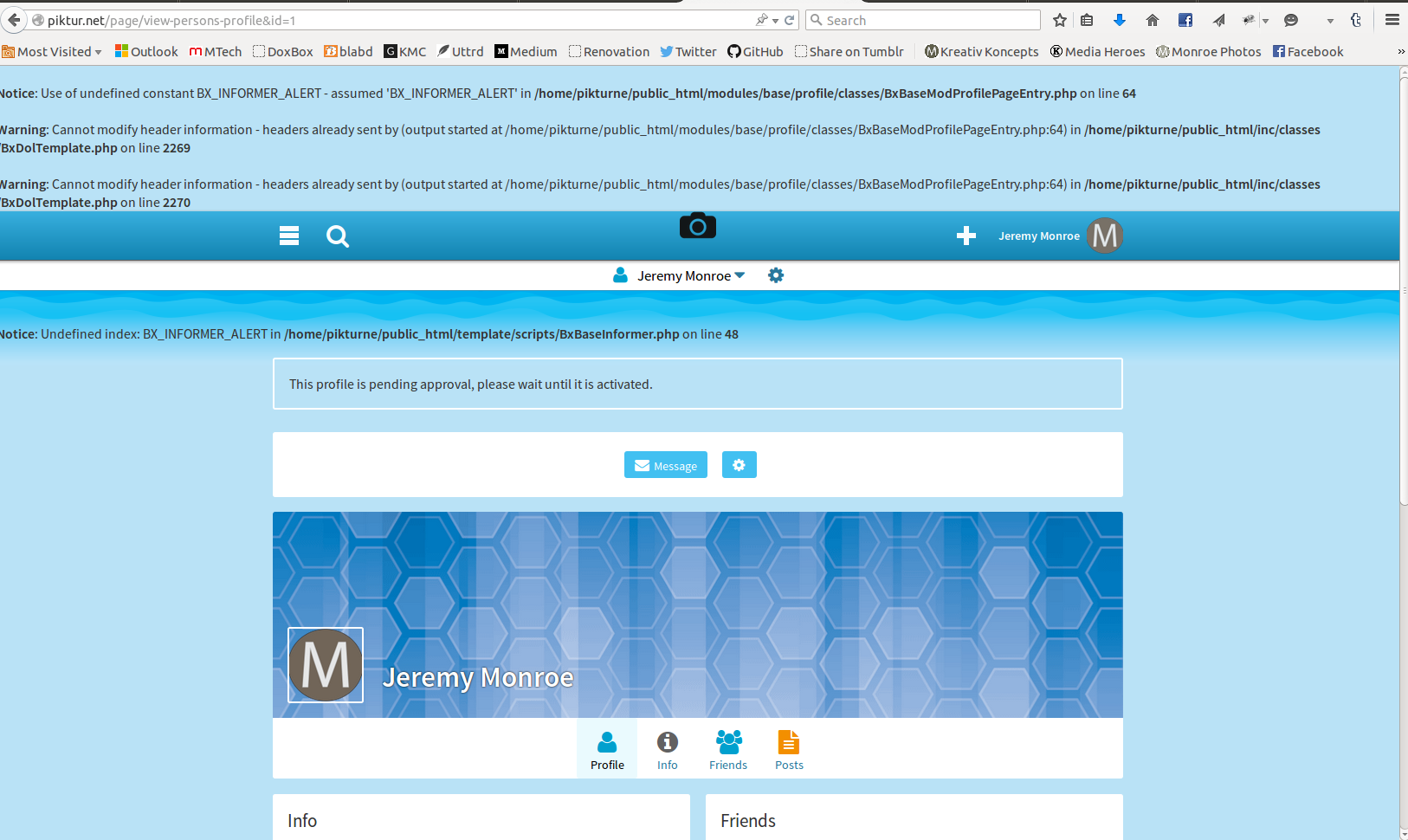 I receive the following error each time I click on view profile. I am trying to activate my own profile since I confirmed the email address using the link sent via email. Once I do that, it brings me to this page with the shown errors but still tells me that my profile has to be activated.