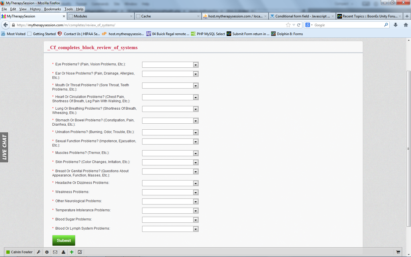 'table' => 'cf_review_of_systems', // table name