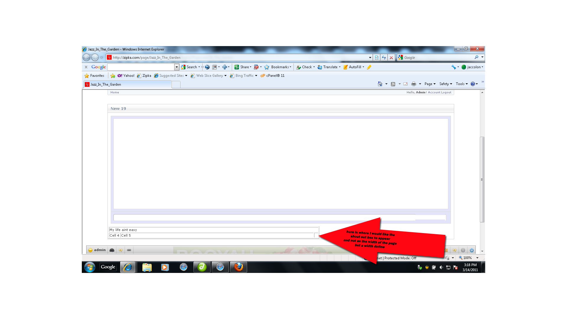 I have been trying to figure this out but to no avail i have this code which is supposed to place the shout box inside a html table cell but for some reason it will not work they shout out box will appear on top of the table and not in side the cell .. I added a screen shot to illustrate what im trying to do also here is the code im using any help will be greatly appreciated