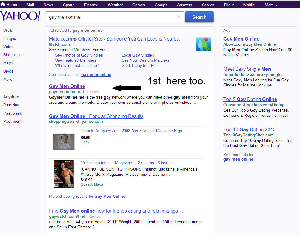Update on my simple examples, I seem to have fallen in rank, but yet still on the top ten list. and again for general usage, "gay men online" this is such a simple notch. Why me to fill this space? ManOfTeal.COM a Proud UNA site, six years running strong! |