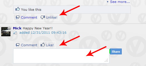 I am new to Dolphin... how can I add the Like/Unlike button and comments box similar to what is pictured on the two "Facebook clone" example websites from the tutorial (http://www.folkdirect.com and http://www.vdubber.com)