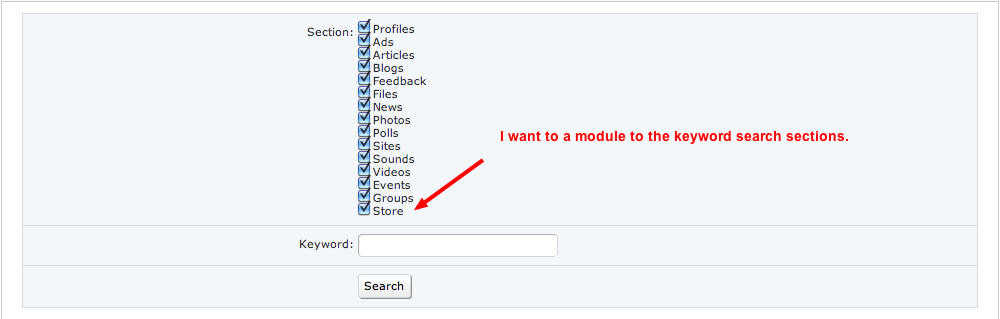 Hi, I installed a new module that I would like to make searchable on the website but Im not sure how to add the module to search. Just as Polls, Ads, News, Files, Feedback and etc are added.