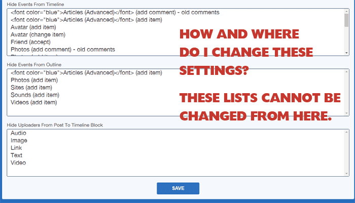 Can we control whats shows or not on the timeline from the dashboard? - I can't find anywhere to set that -