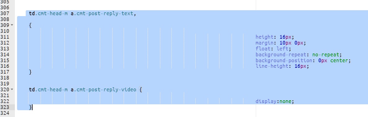 (Below was Copied and pasted from = td.cmt-head-m a.cmt-post-reply-video) td.cmt-head-m a.cmt-post-reply-text, { height: 16px; margin: 10px 0px; float: left; background-repeat: no-repeat; background-position: 0px center; line-height: 16px; }