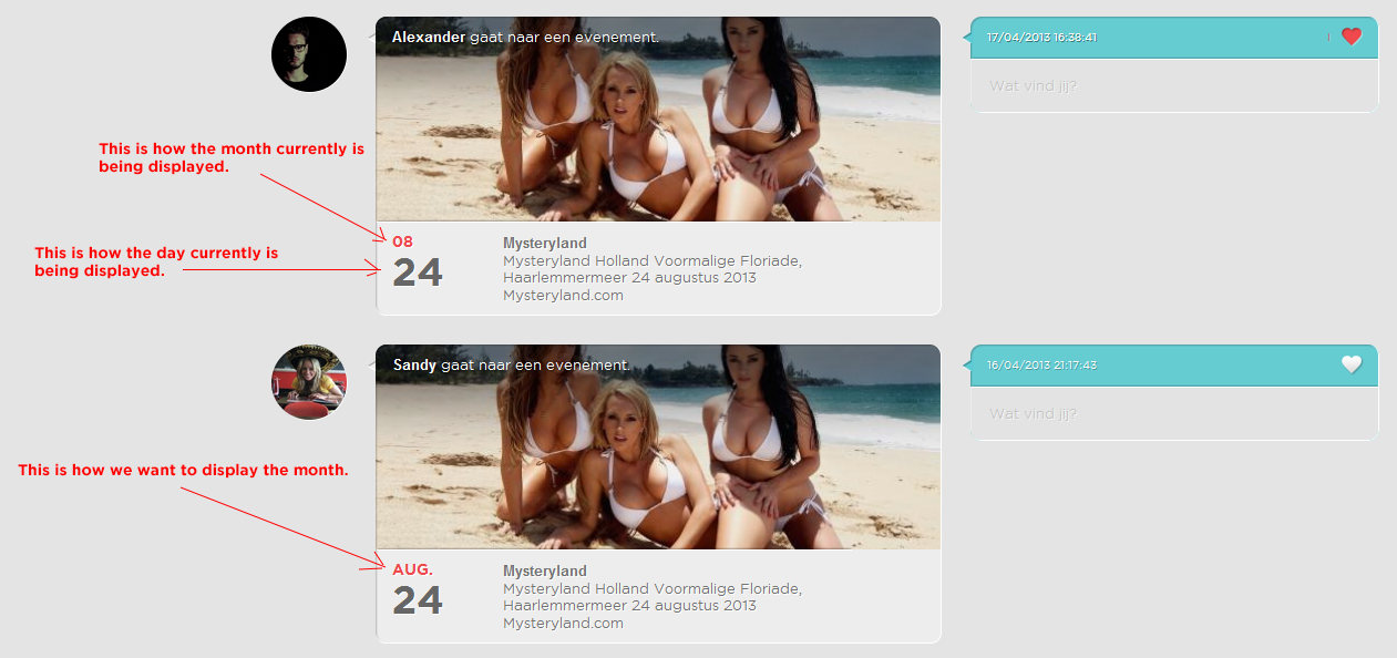 We use the module: http://www.boonex.com/m/evo-wall-advanced-news-feed-2012-08-29 and i'm working on the viewing of events on the wall. We designed a cool method of viewing events on the wall, but we ran into a small problem with the realization of it.