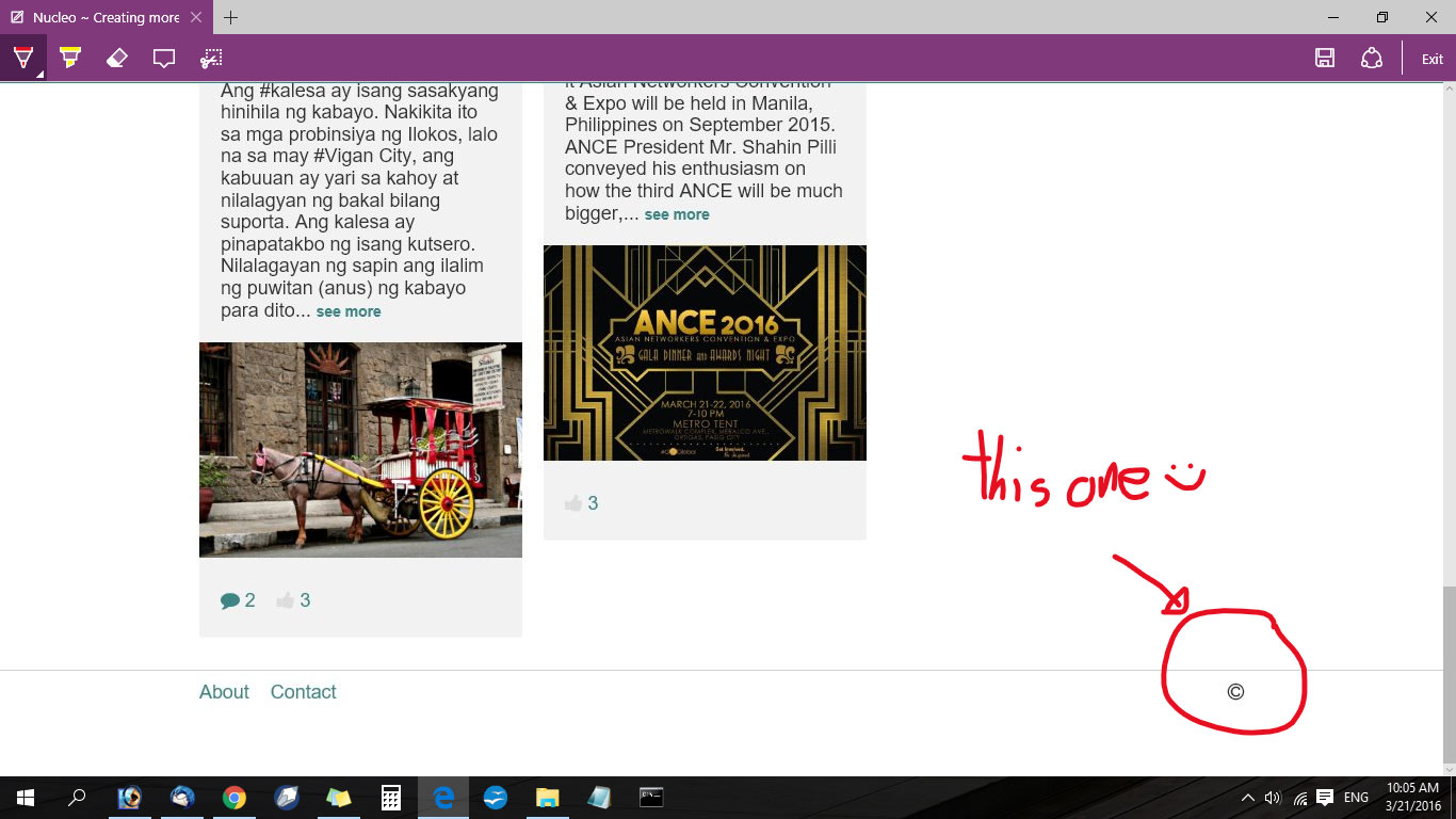 I've finally set-up my trident based website http://nucleo.projectatom.net, and I'm really having difficulty of looking for the module to edit the (c) icon at the bottom right of my page.