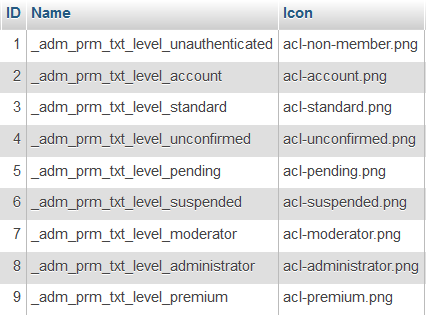 According to the table sys_acl_levels, 3 = standard Baloo  |
