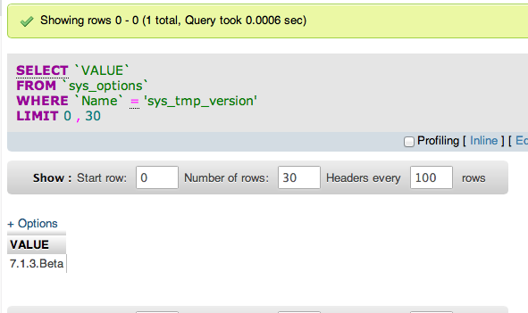 But after, change the database entry in sys_options. The sys_tmp_version entry from the value of 7.1.3.Beta to just 7.1.3