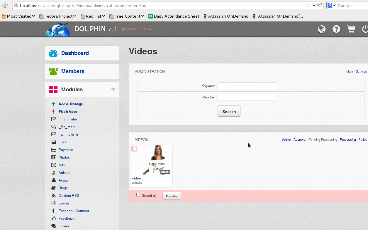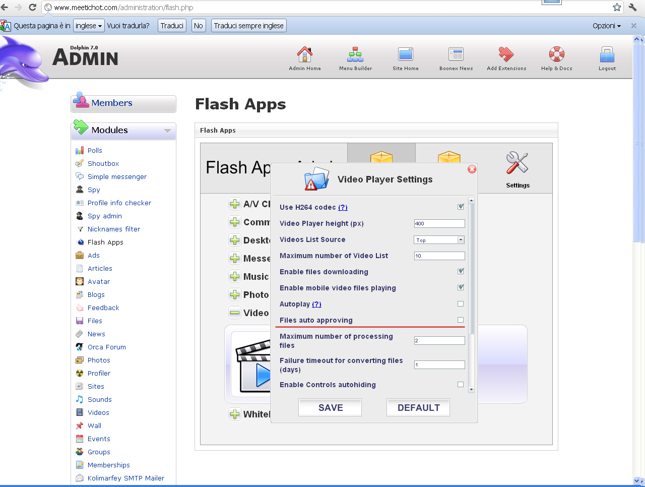 Dolphin Admin Panel ----> Flash Apps ----> Video Player ----> Settings -----> Files Auto Approving