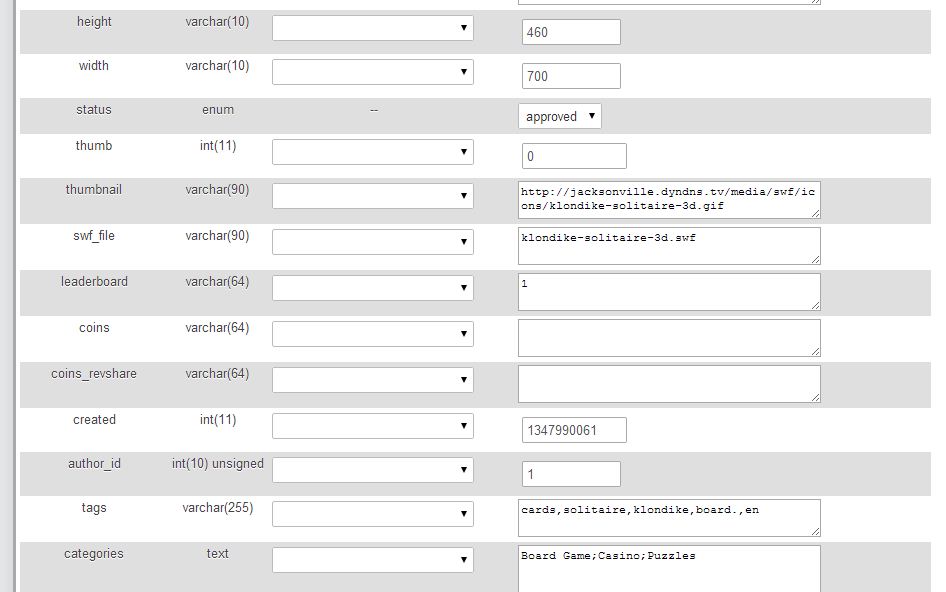 Make a backup of the table and run the following command: UPDATE `Games` SET `thumbnail` = replace(`thumbnail`, 'http://jacksonville.dyndns.tv', '') Dedicated servers for as little as $32 (28 euro) - See http://denre.com for more information |