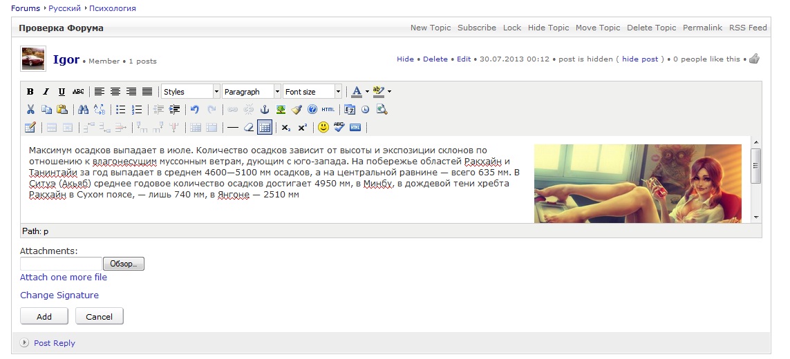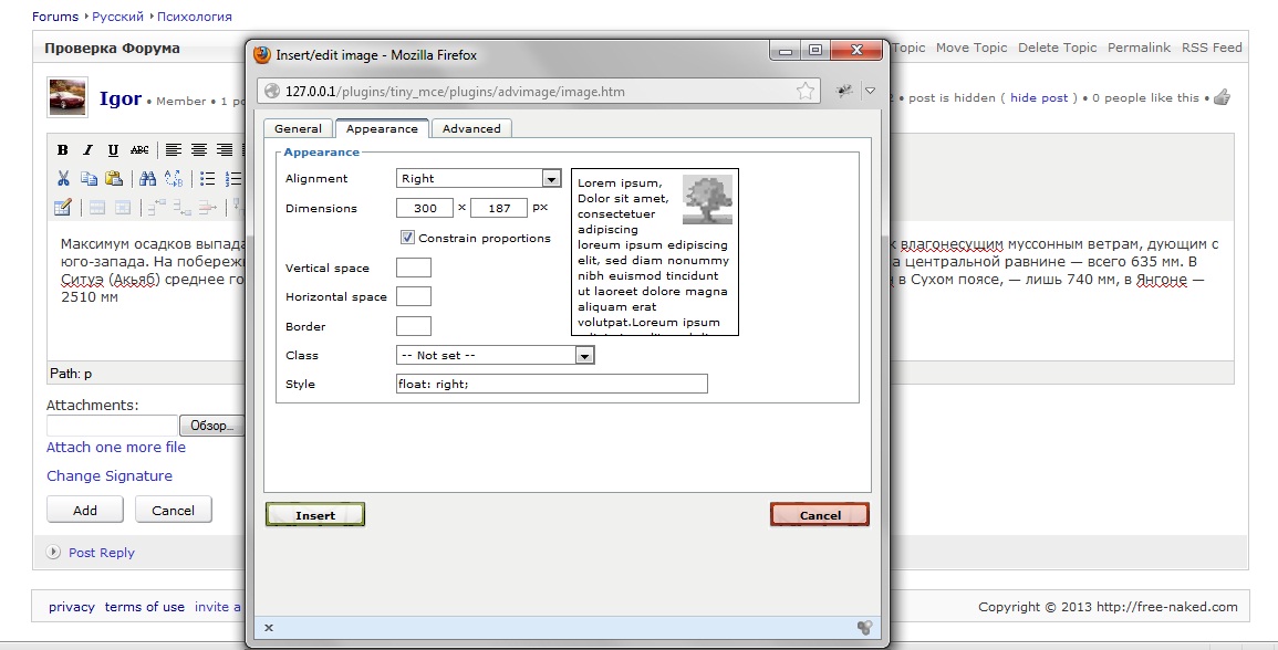 After you insert the picture in the forum topic can not change its position and flow, still picture is on the left, the default position. Dolphin 7.0.9 Please help... |