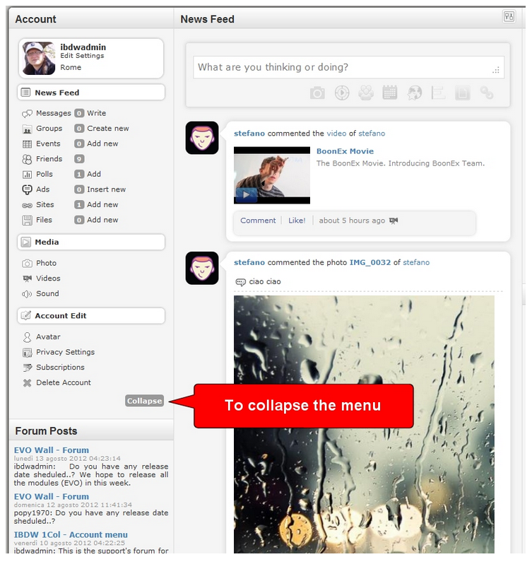 Then replace the icons you see into the folder ibdw/1col/templates/base/images/icons/ link1.png, link2.png, ecc.... and sect1.png, sect2.png, ecc...with your icons See my products at http://www.boonex.com/market/posts/ilbellodelweb | Hosting: zarconia.net |