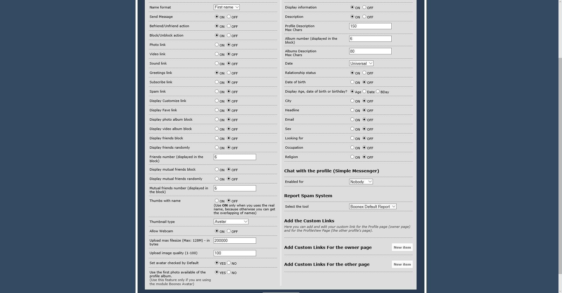 This is a printscreen of our current settings in admin. We still have the same problem as mentioned before. Contact us in pm, we want to check directly your installation of MegaProfile See my products at http://www.boonex.com/market/posts/ilbellodelweb | Hosting: zarconia.net |