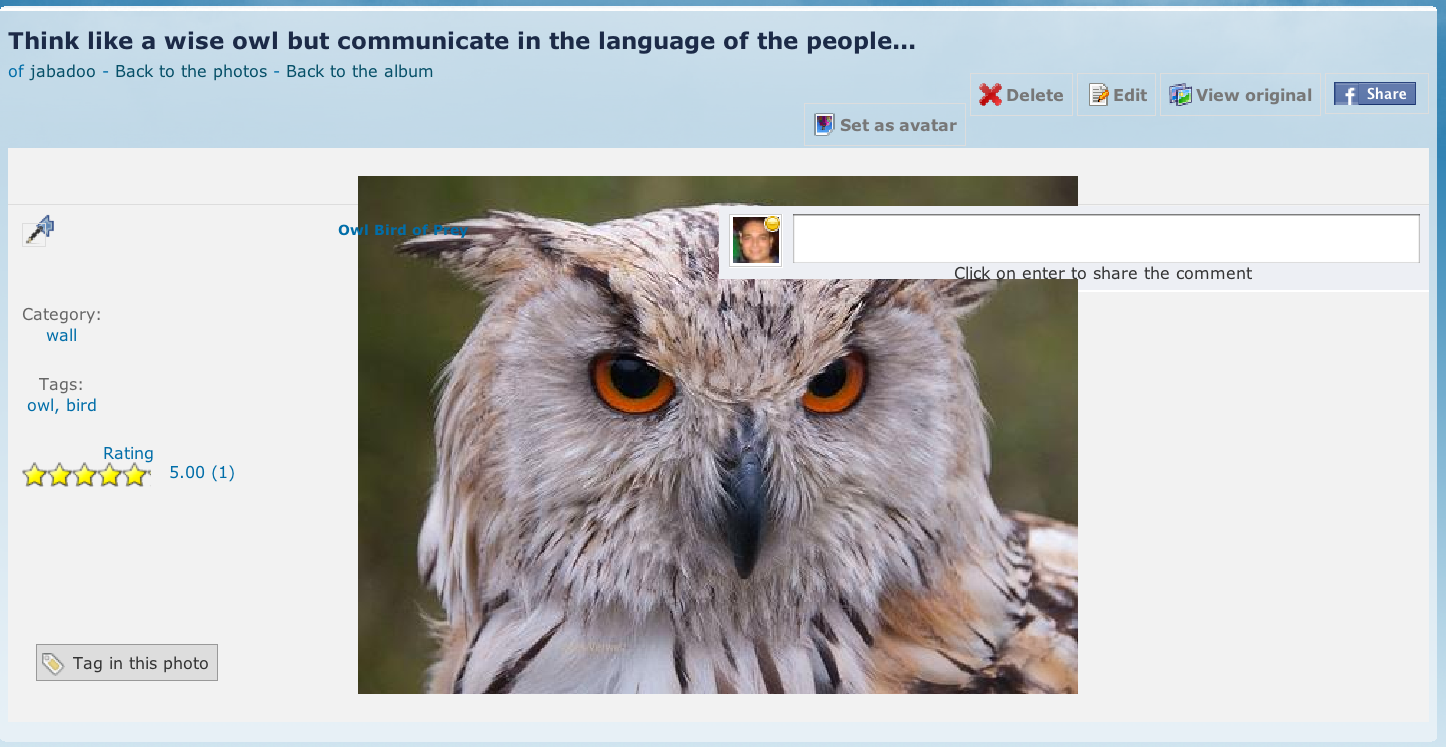 Also, in this version we added the self-tagging. So now you can tag your self in the photos. See my products at http://www.boonex.com/market/posts/ilbellodelweb | Hosting: zarconia.net |