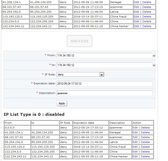 In another case I entered the IP of a spammer and it saved as 0.0.0.0