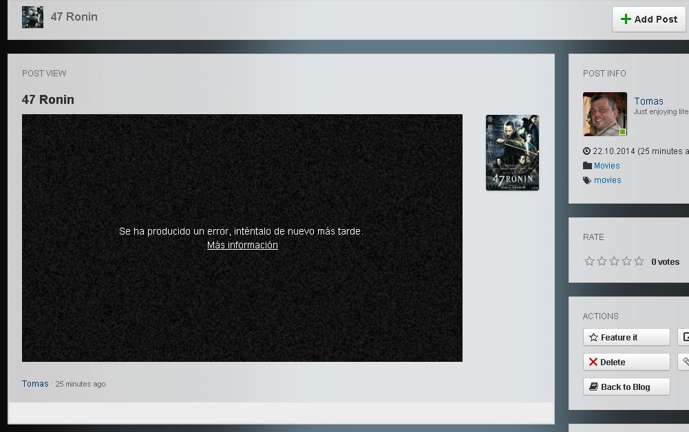 Thanks again geek_girl. I know it supports, because Just a few days ago I had almost 200 movies working on. However, I did resolved the issue and it worka again. Here is an example how it works: http://delguiri.com/blogs/entry/47-Ronin-2014-10-22