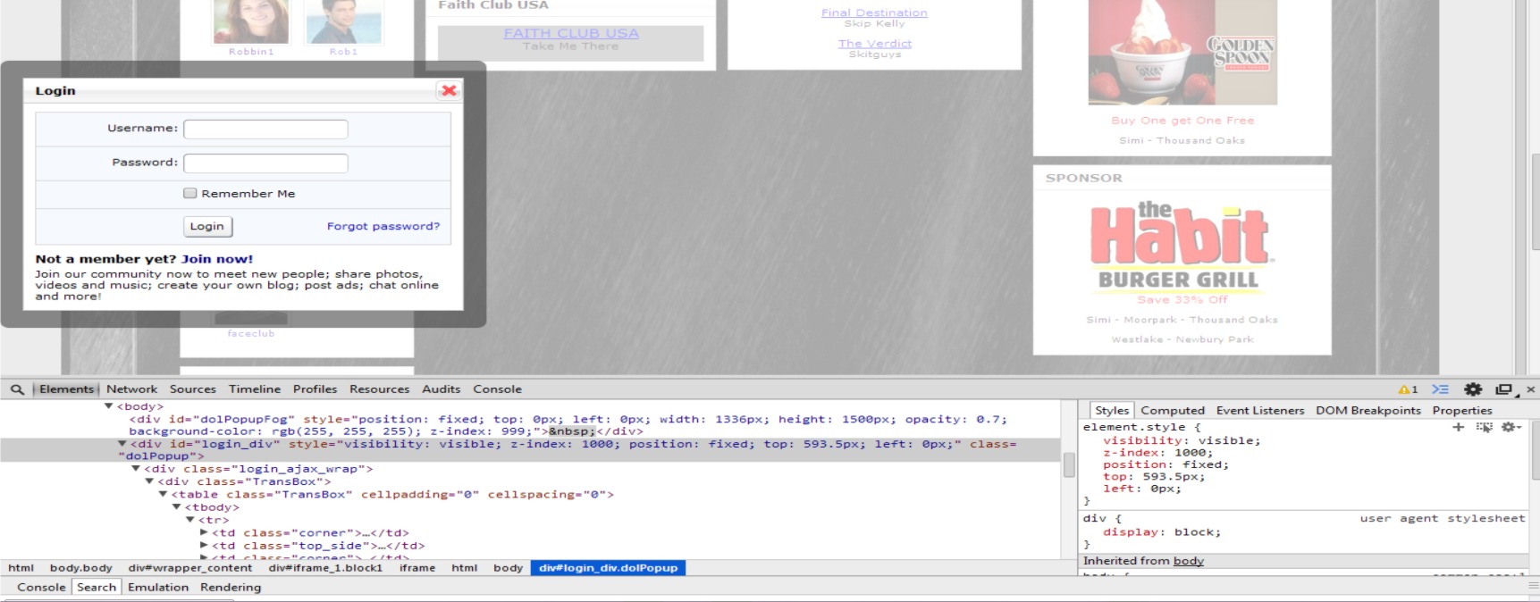 I need to access a <style> tag in a <div id="login_div"> which controls position of the LOGIN BOX.