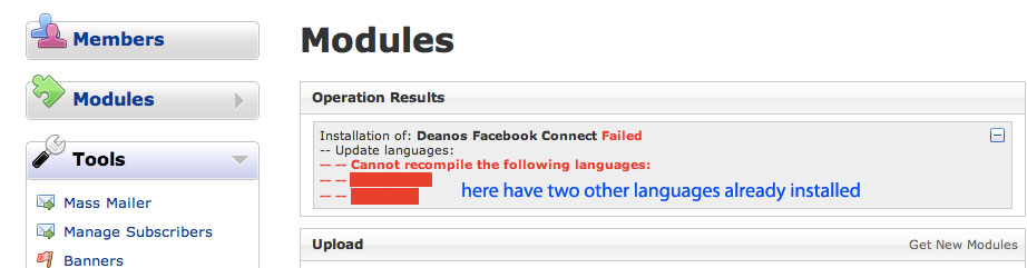 As for your error. The error says it can't recompile your languages. The error is reported by dolphin, not by my module as dolphin handles the install and recompiling operations during the install process.