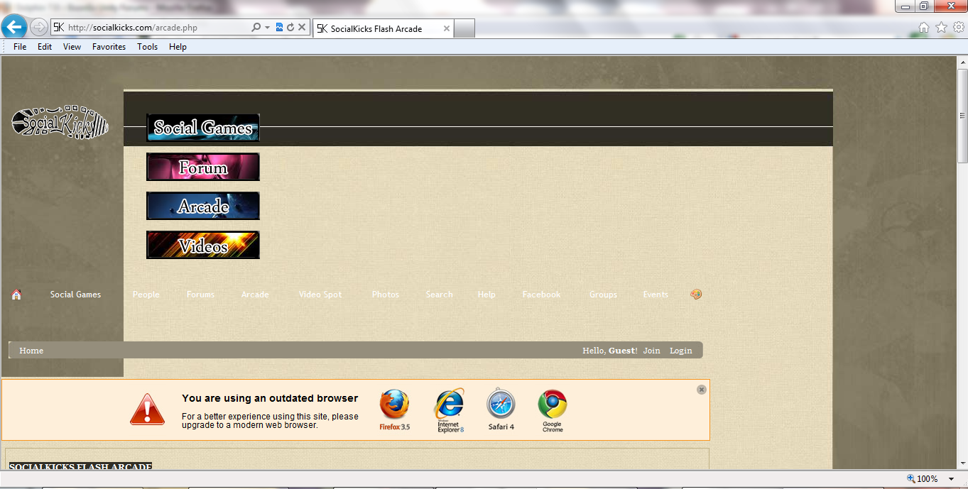 I have Internet Explorer 9 on my computer. When I visit my site, for instance this page, http://socialkicks.com/arcade.php, there are significant css issues. The entire site is pushed over to the left, and the dropdown menus don't work at all. You can use the theme switcher to see it in UNI and it is broken in the UNI template too.