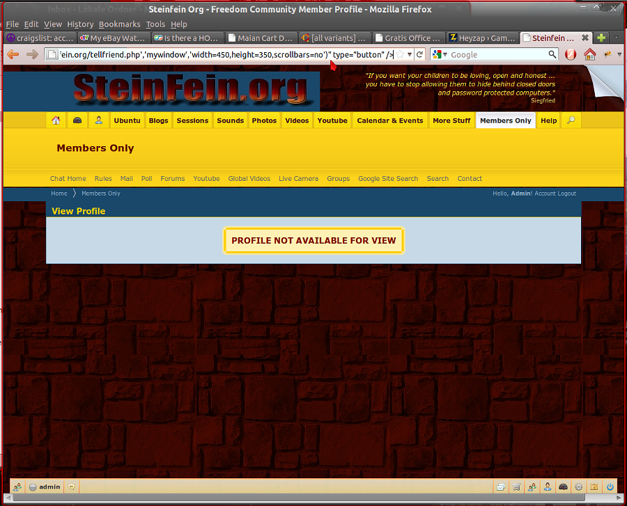 Result was the same as when I tried using HL suggestion as a link. I don't use caching on my browsers at all (we have a dedicated 20 mbps connection) and I did clear the cache in Dolphin first, to make sure that I'd get a clean link to click on. I also tried changing the url with the actual file name instead ... tellfriend.php ... but that didn't work either. Opera and Firefox both displayed that odd unaccessible profile page after clicking on the link. Any other thoughts or ideas? Keep 'em coming please .... thanks. BTW, happy easter!