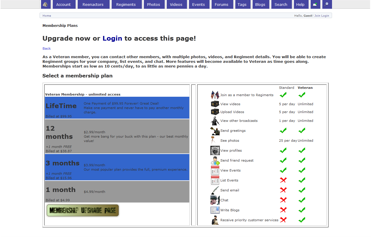 user clicks on Photo and instead getting a Access is Forbidden, he/she gets redirected to a custom page that shows reasons why to upgrade membership, with links for each membership