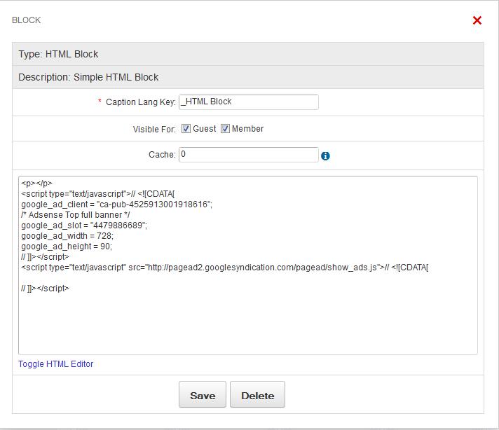 - Create HTML block on desired page for adsense