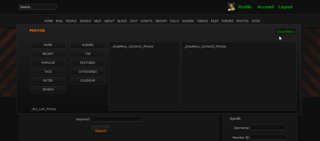 Below is a screen shot of a full width drop menu (Dolphin 7.1) . What I would like to do, is give the user another way to close the menu other than mousing off the ul. .... <ul class="sub main_elements">