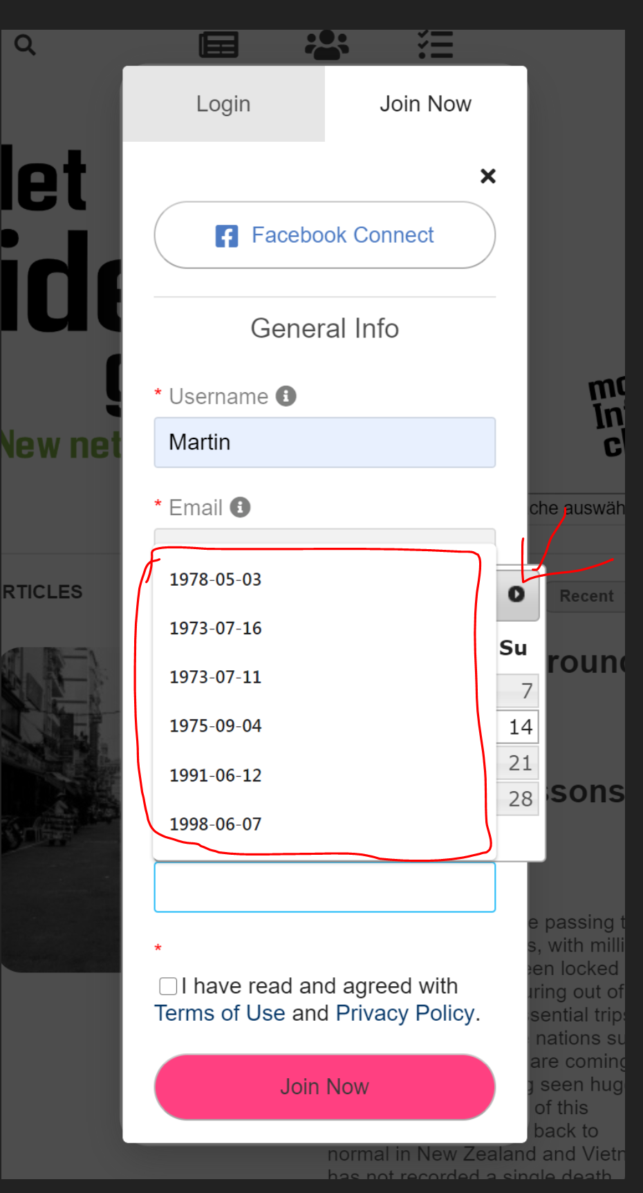 Could this "proposal" field be suppressed for the browsers? Maybe only in the row for the birthday? Or for the whole join interface. So that the UI element "date selector" is always visible.
